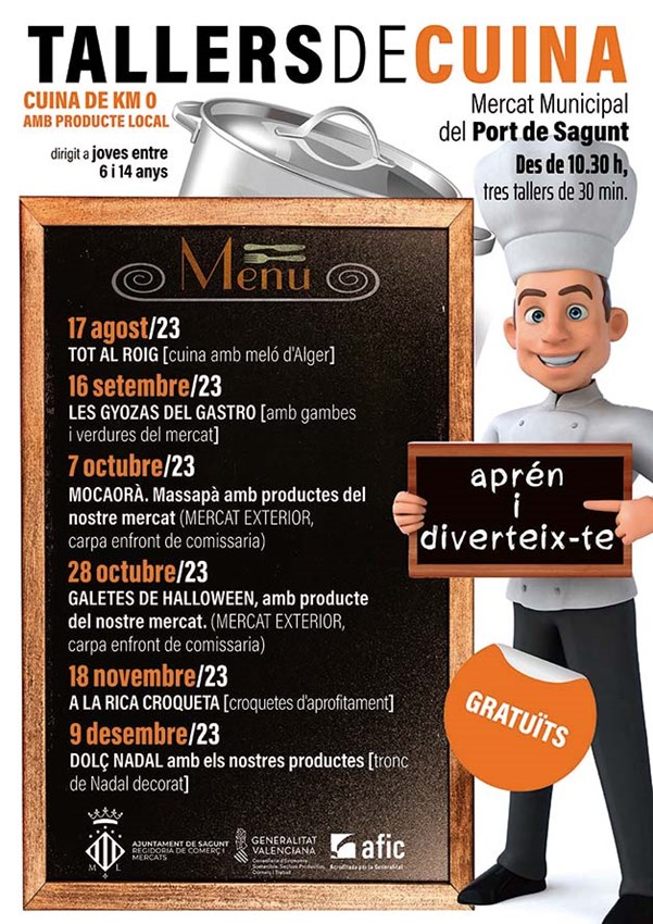 La regidoria de Comerç i Mercats de l'Ajuntament de Sagunt ha programat 16 tallers culturals de diverses temàtiques en els mercats municipals de Sagunt i del Port de Sagunt sota el lema “Cuina amb responsabilitat”. Les temàtiques són arqueogastronomía, cuina, infantils i diversió. Estos tallers s'enquadren dins del programa de dinamització comercial del departament per a impulsar estos equipaments comercials.