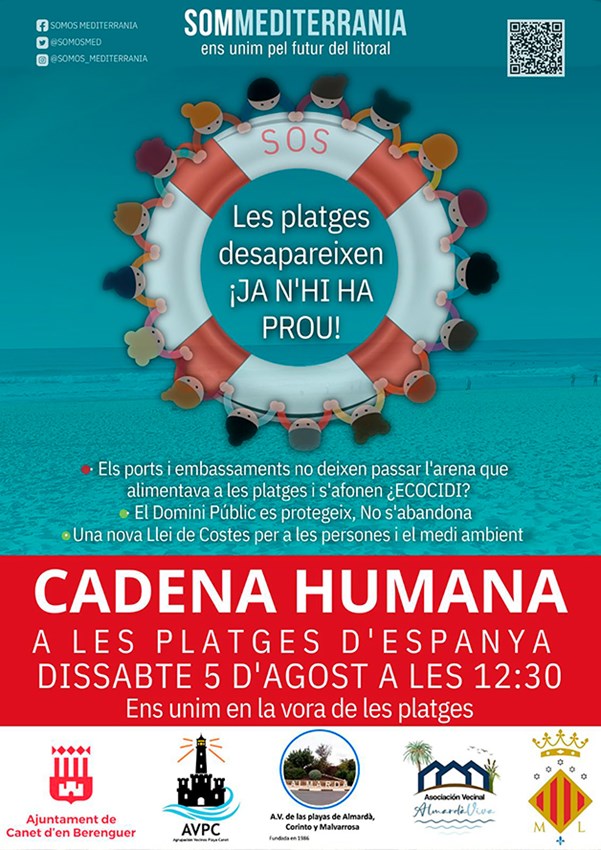 Els Ajuntaments de Sagunt i Canet d'en Berenguer, així com associacions veïnals de totes dos localitats s'han sumat a esta iniciativa que consistirà a crear cadenes humanes en la vora de les platges d'Espanya.